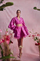 Flamingo pink pvc dress accentuated with hand embroidery paired with a beltCare : Dry clean only