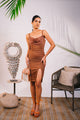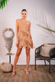 Cinnamon t-length hand-embroidered dress with voluminous sleeves made in Chiffon