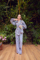 Iris blue jumpsuit with PVC detailing paired with a hand-embroidered beltComposition:Cotton Lycra, Lace,Dull Boskey, Tulle,Organza And Edging LaceCare : Dry clean only