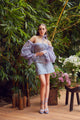 Iris blue Printed Blazer with highlighted embroidery paired with panelled pantsComposition:Cotton Lycra,Dull Boskey,Crinkle ChiffonCare : Dry clean only